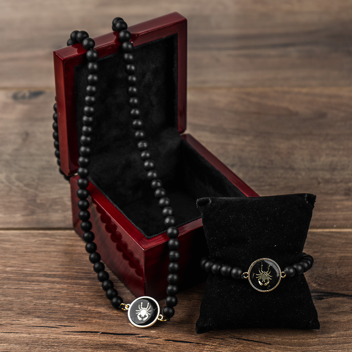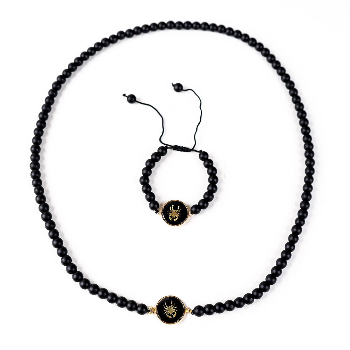 نیم ست های مهره ای مشکی از انواع گردنبندهای رو لباسی است که محبوبیت خاصی بین جوانان پیدا کرده است و جذابیت زیادی به استایل شما میدهد.طرح روی پلاک این گردنبندها نماد ماه های سال بوده و میتوانید ماه مورد نظرتان را انتخاب نمایید. قطر سنگ ها 2 میلی متر و به رنگ مشکی مات بوده و به دلیل طراحی خاص، برای استفاده روزانه و قابل ست شدن با انواع پوشش ها و مناسب برای آقایان و خانم هاست.