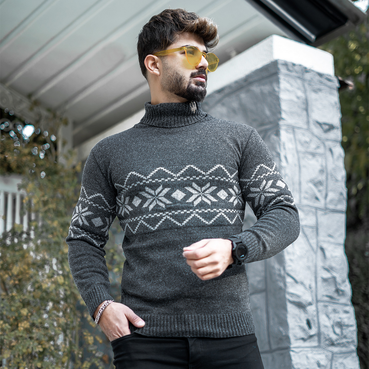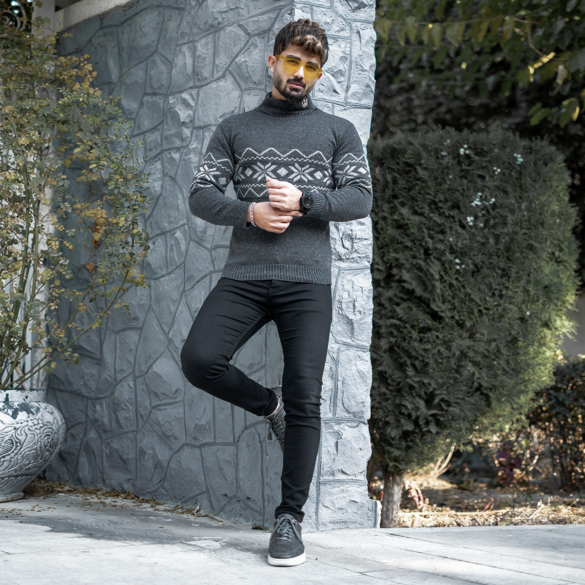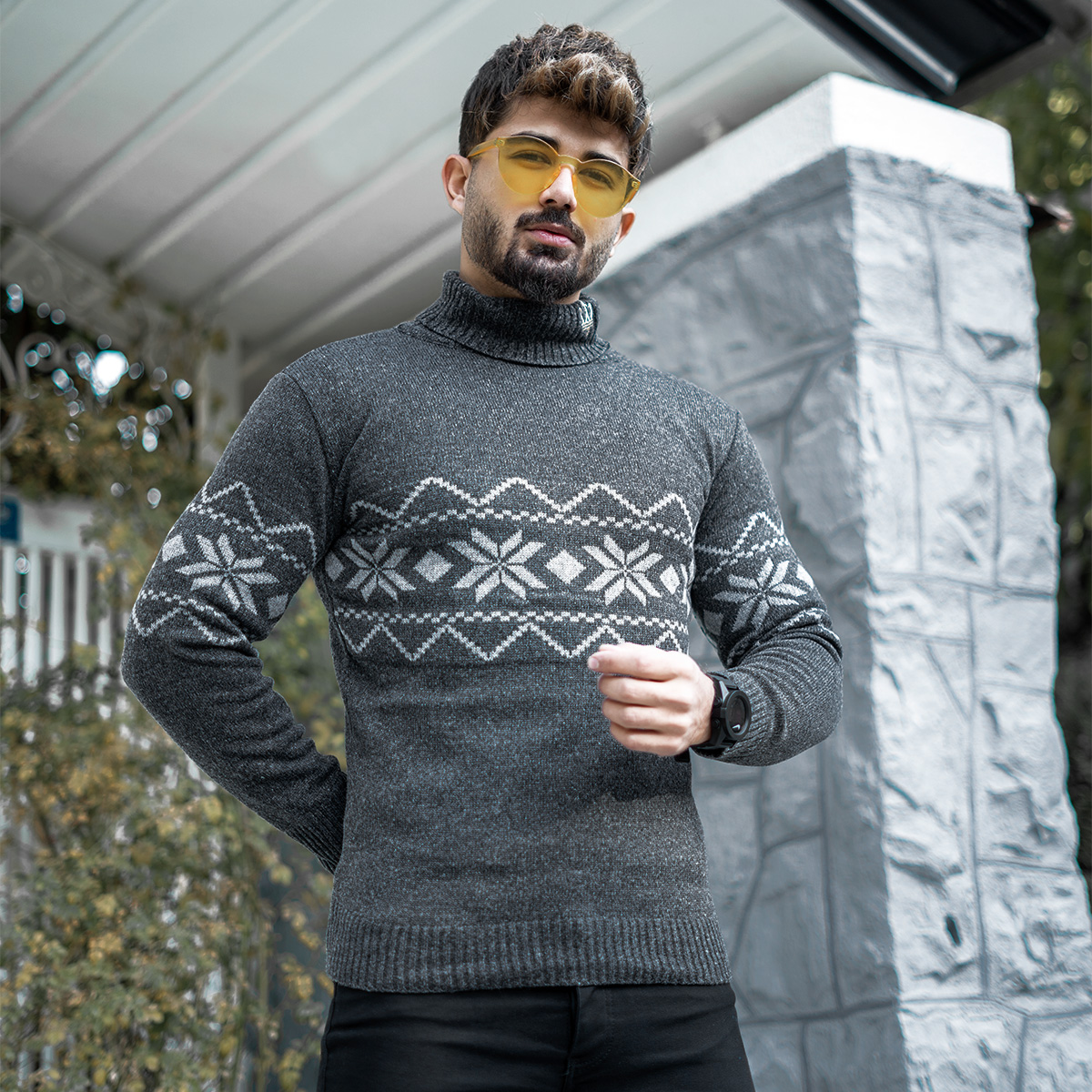 یقه اسکی مردانه ذغالی مدل Arja