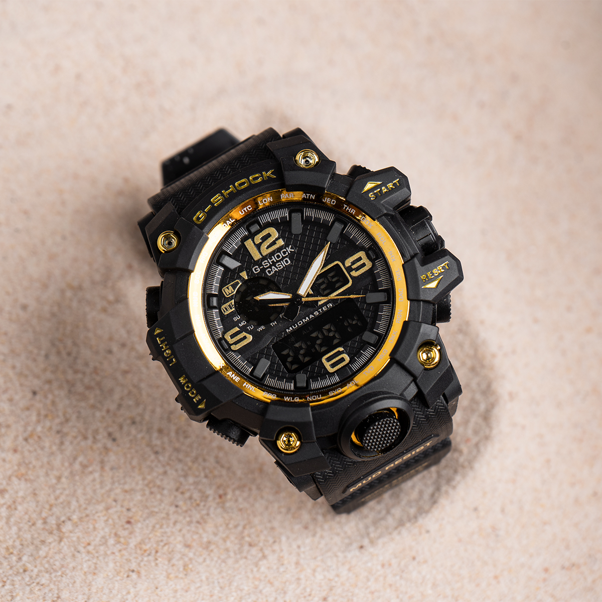 ساعت جی شاک مشکی طلایی مدل sp750