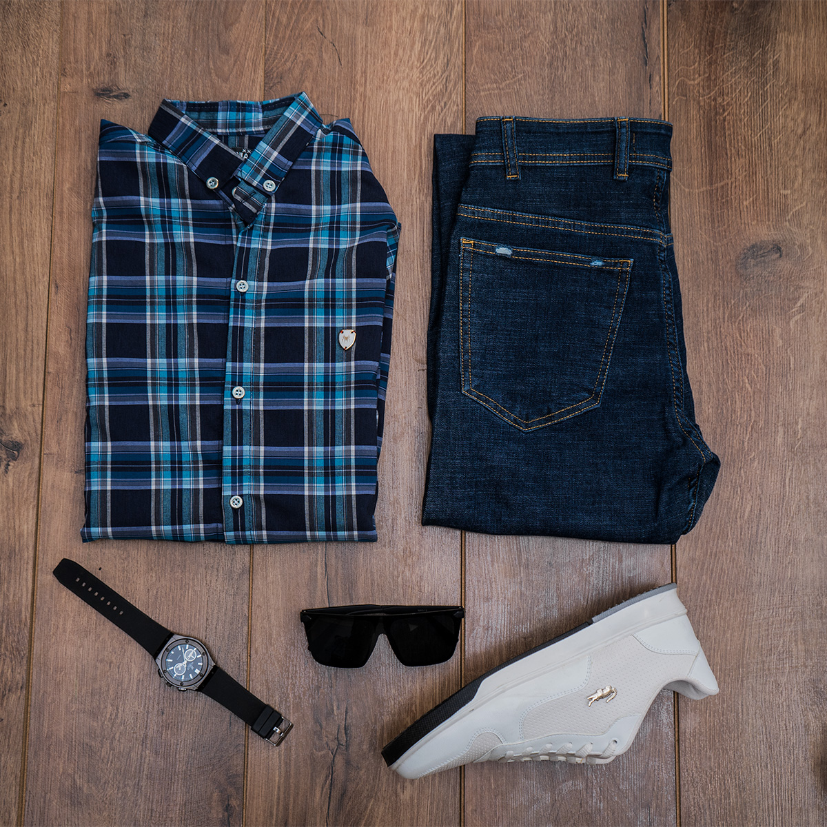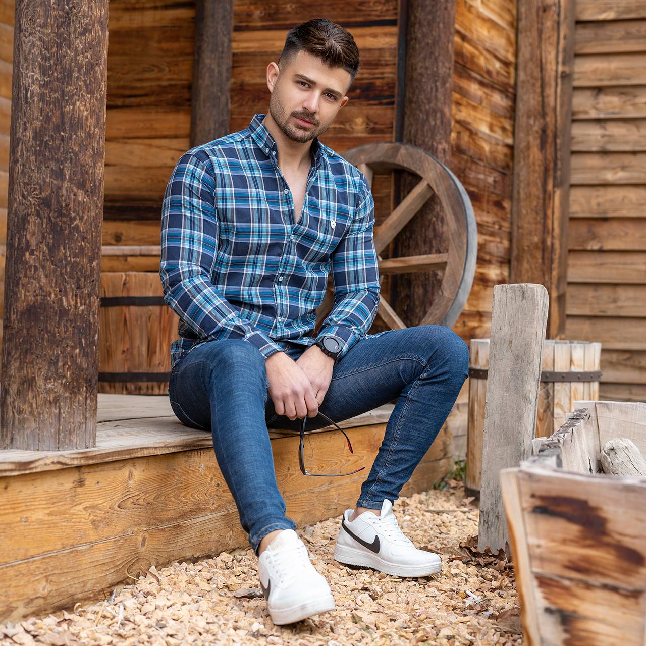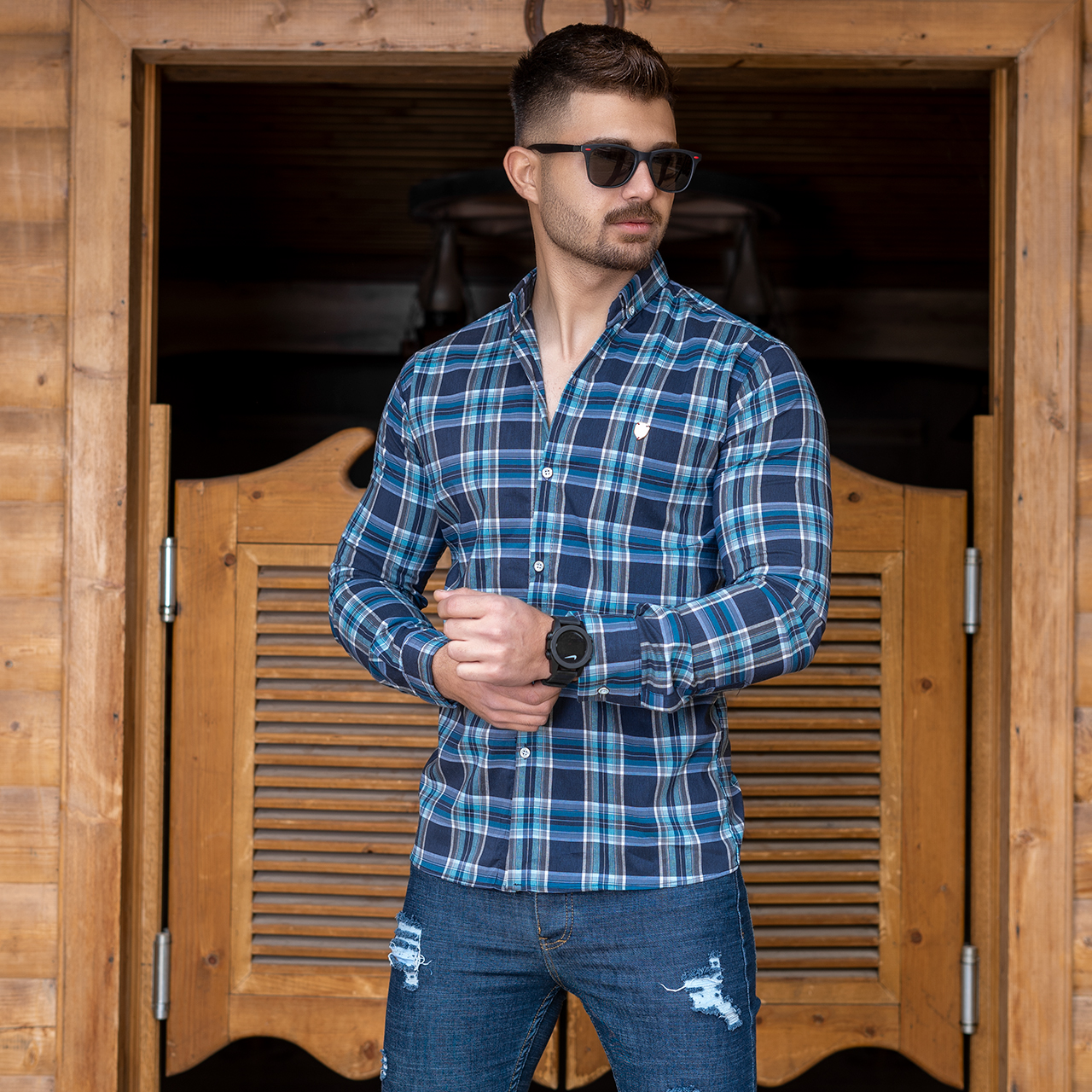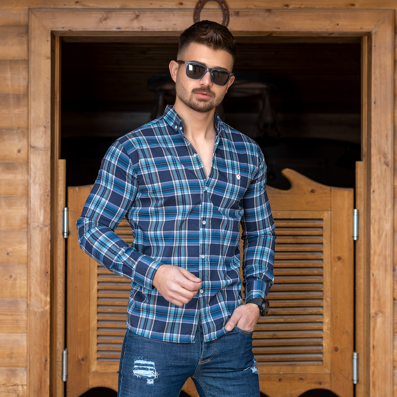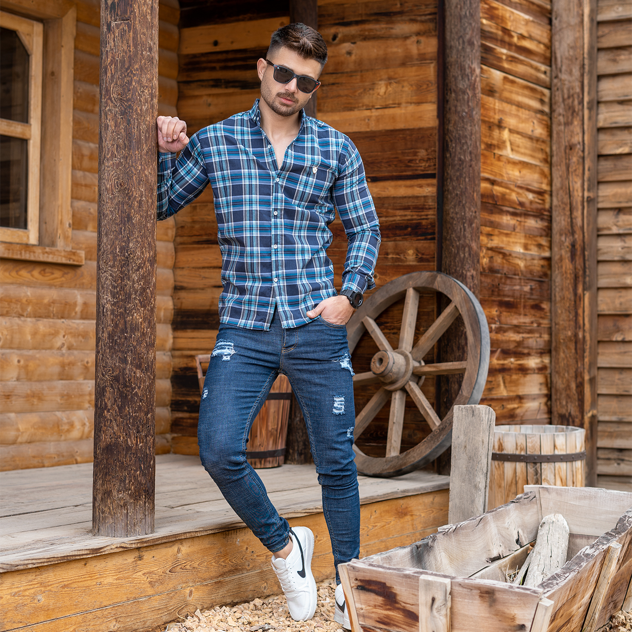 پیراهن چهارخونه سرمه ای آبی مردانه مدل katin