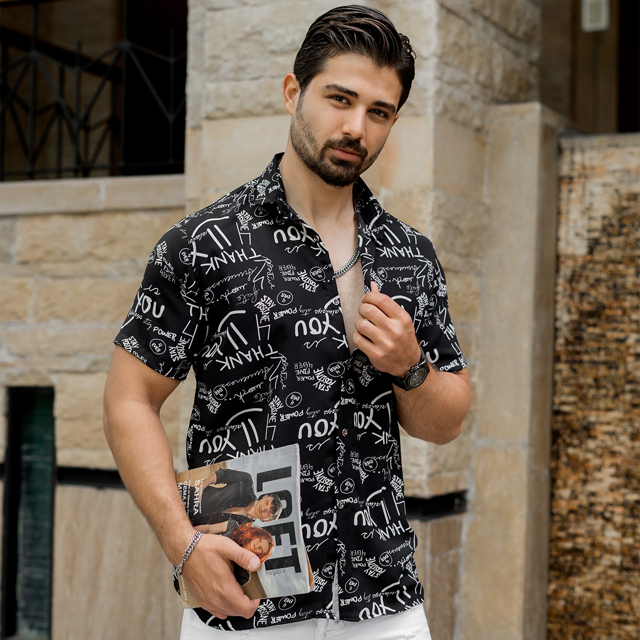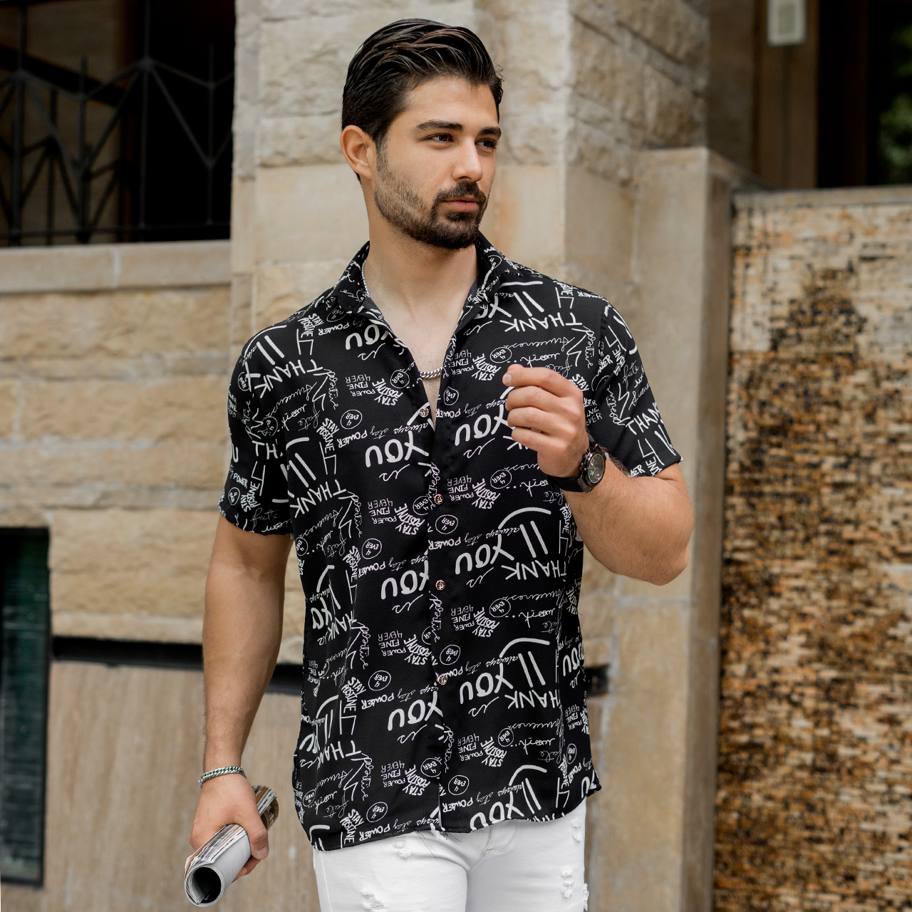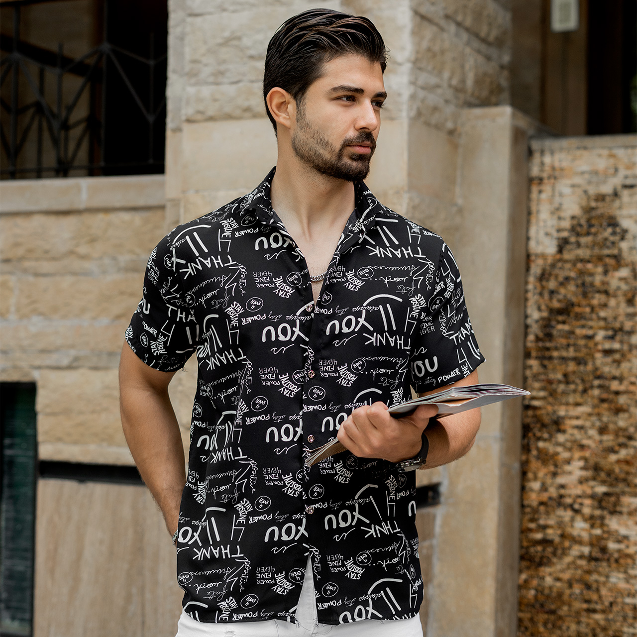 پیراهن هاوایی مردانه طرح لبخند مدلThank You