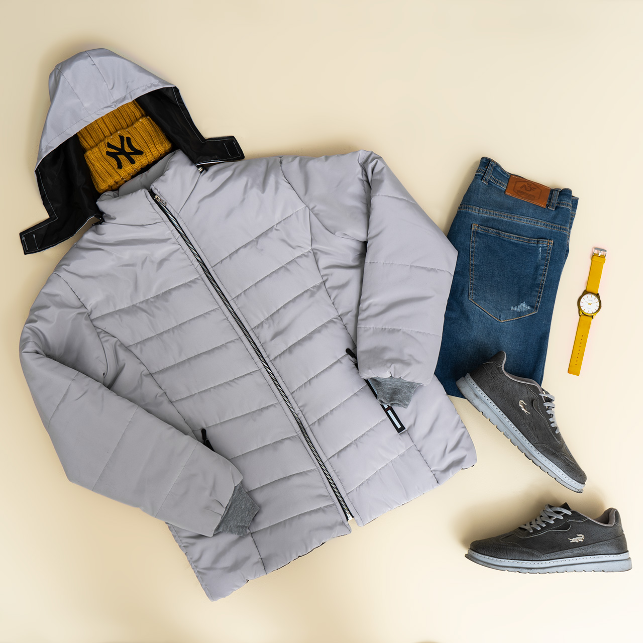 کاپشن مردانه طوسی روشن مدل Aidin