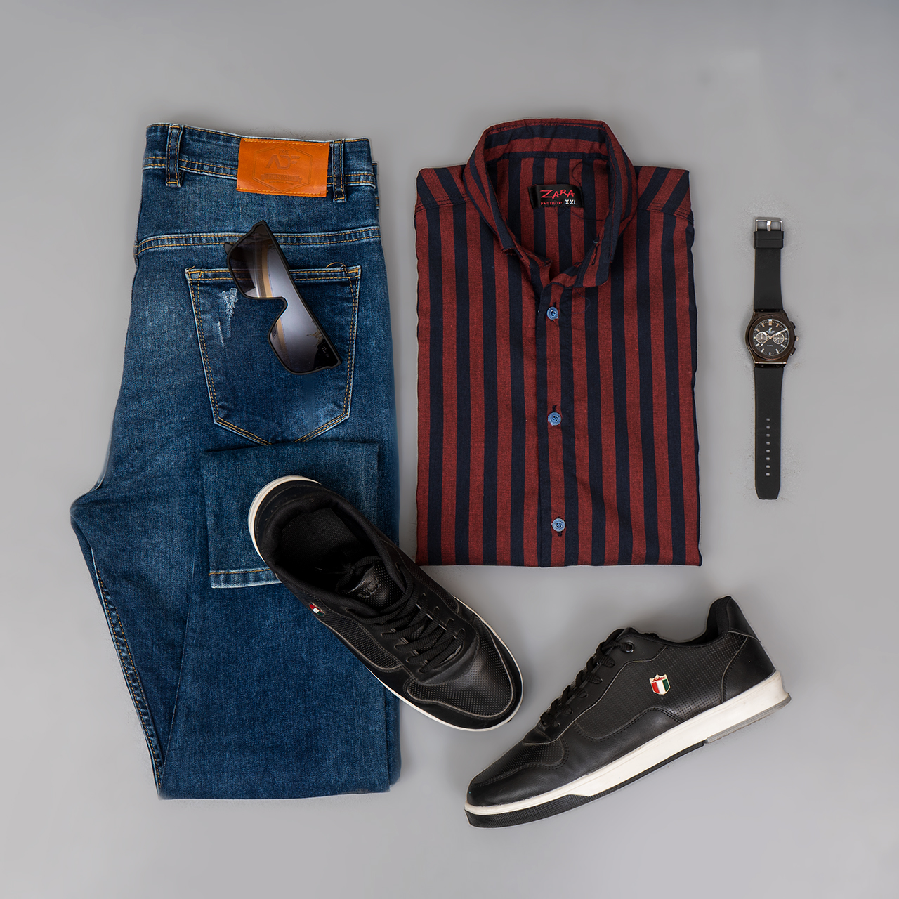 پیراهن راه راه مشکی قرمز مردانه مدل HAMED