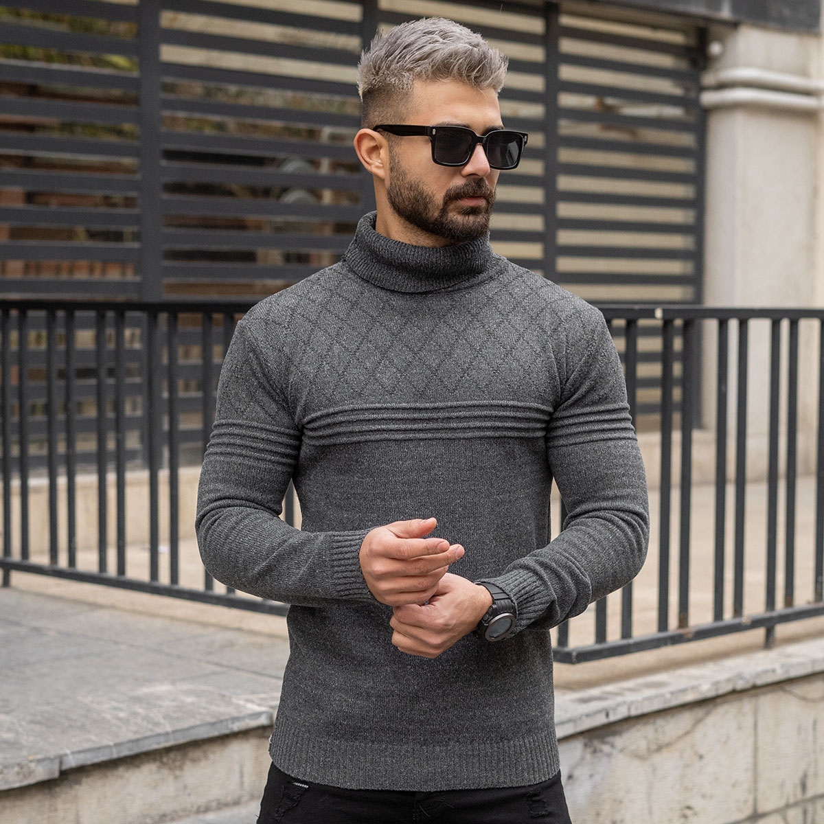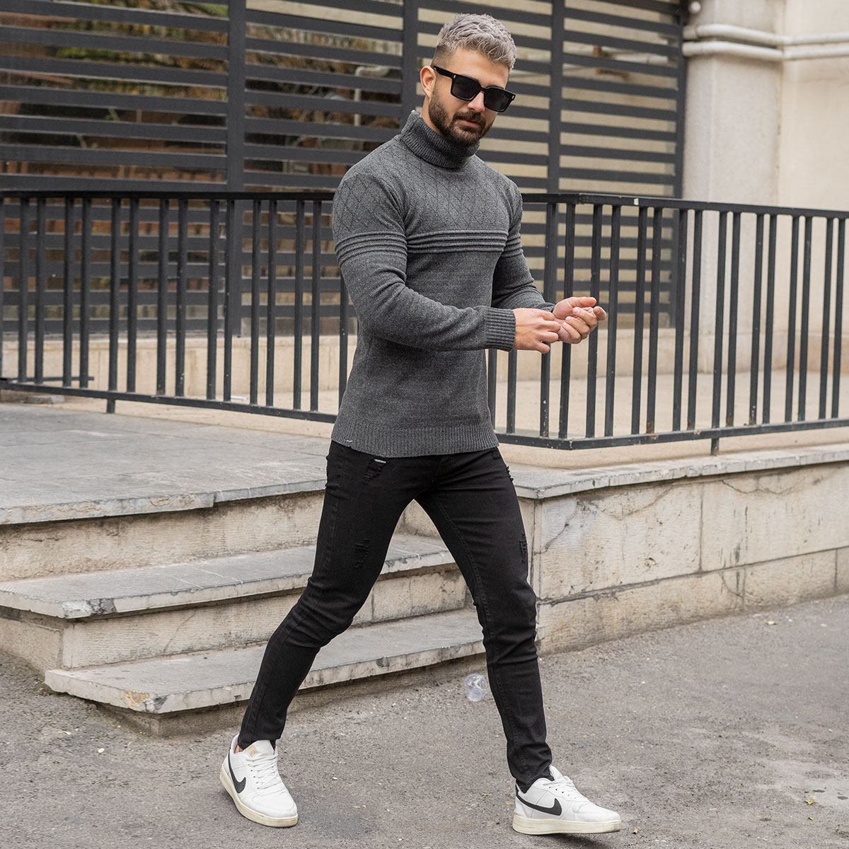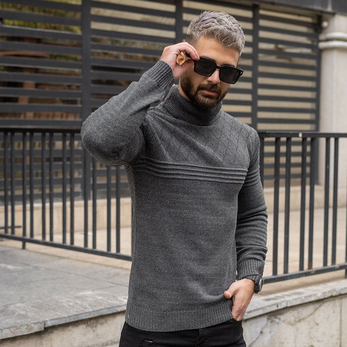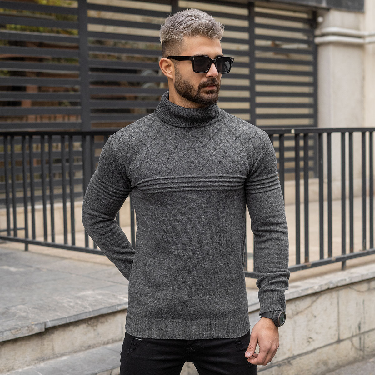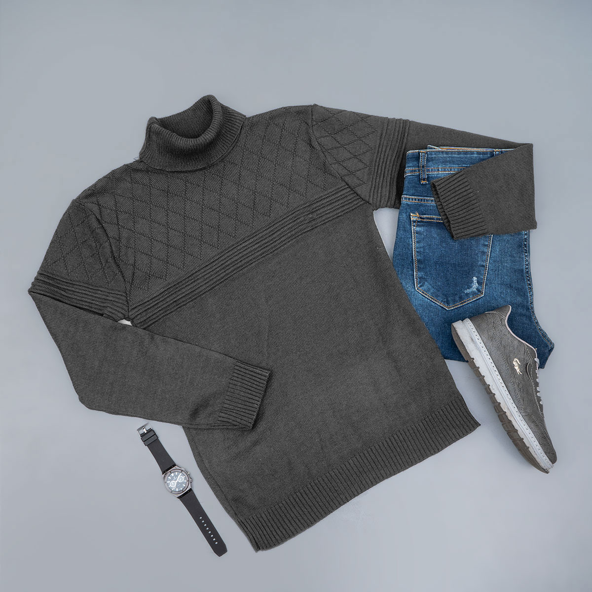 پلیور مردانه ذغالی طرح لوزی یقه اسکی مدل Havash