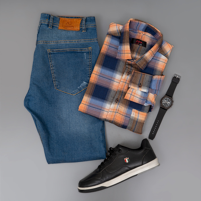 پیراهن مردانه چهارخونه نارنجی سرمه ای مدل Robert