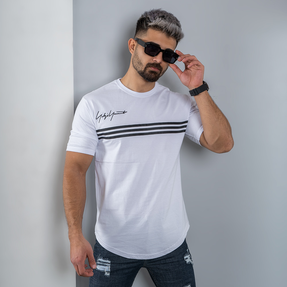 تیشرت مردانه سه خط سفید مدل DENVER