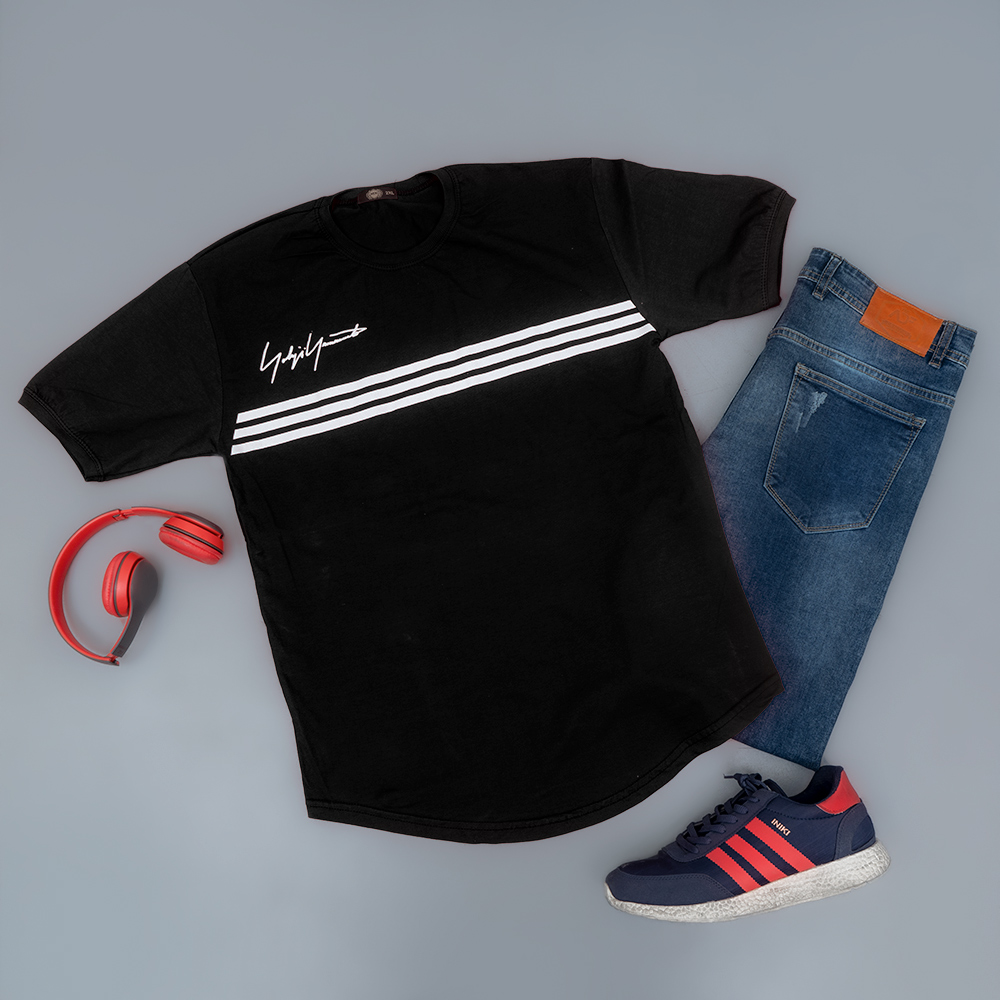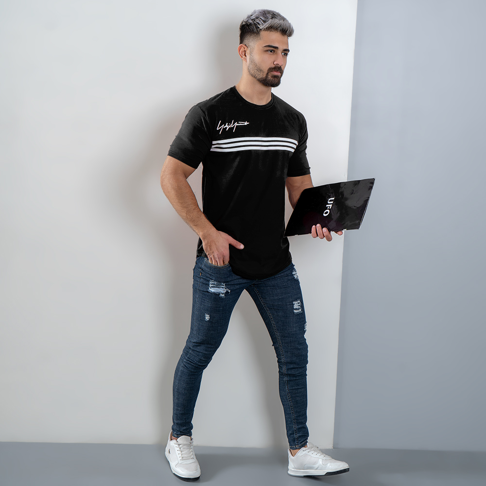تیشرت مردانه سه خط مشکی مدل DENVER