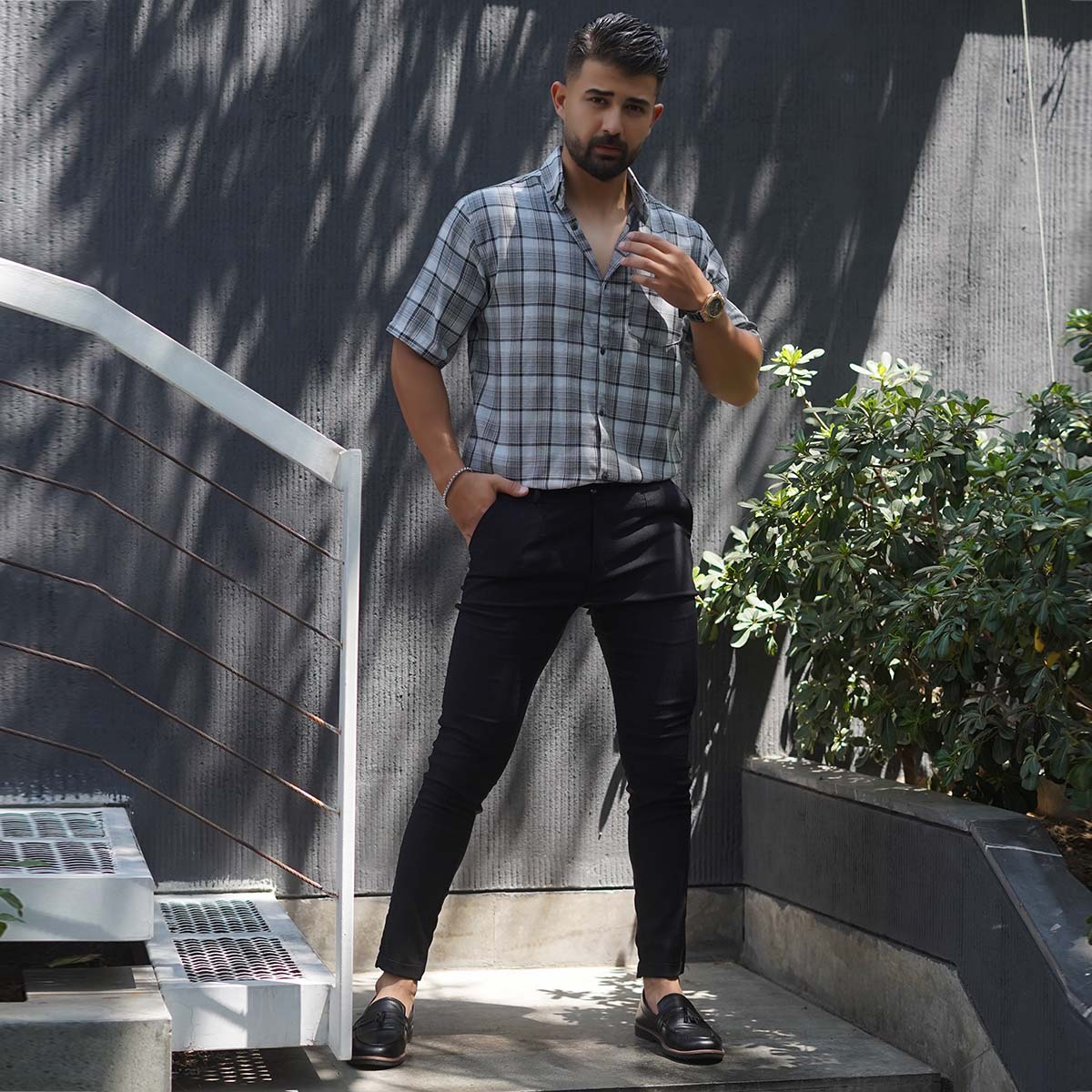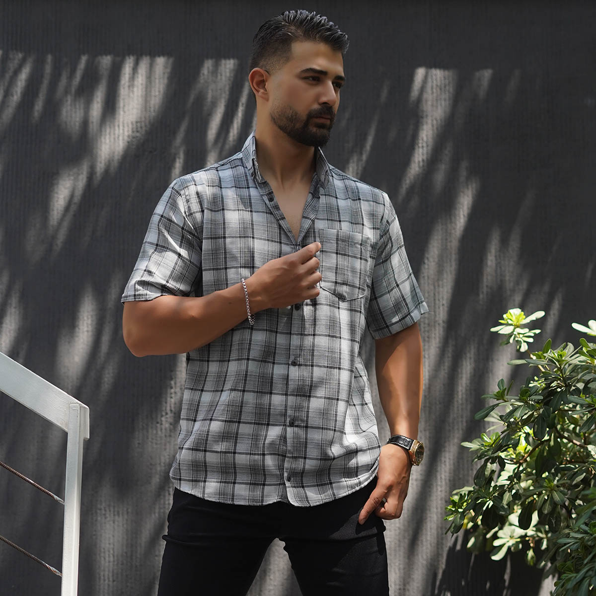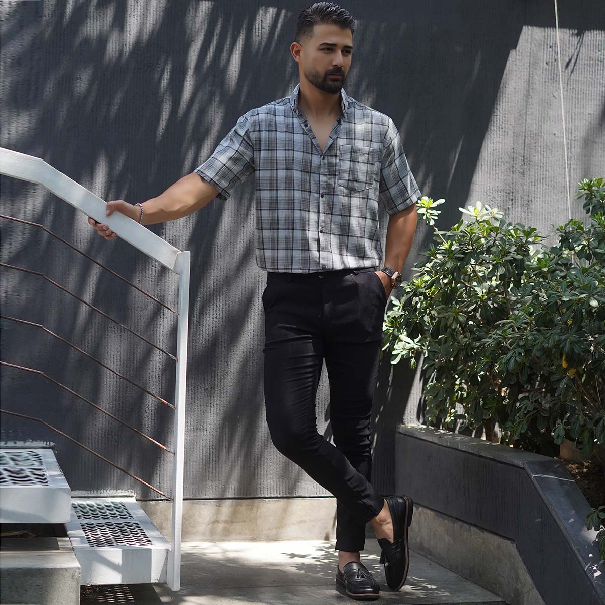 پیراهن آستین کوتاه مردانه طوسی مدل Samyar