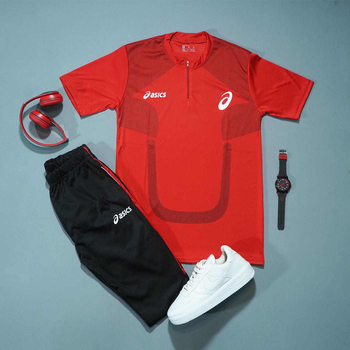 ست تیشرت شلوار مردانه قرمز مدل ASICS
