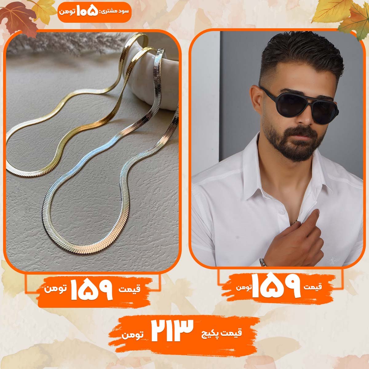 عینک مشکی مردانه مدل Arasگردنبند نقره ای مدل fered