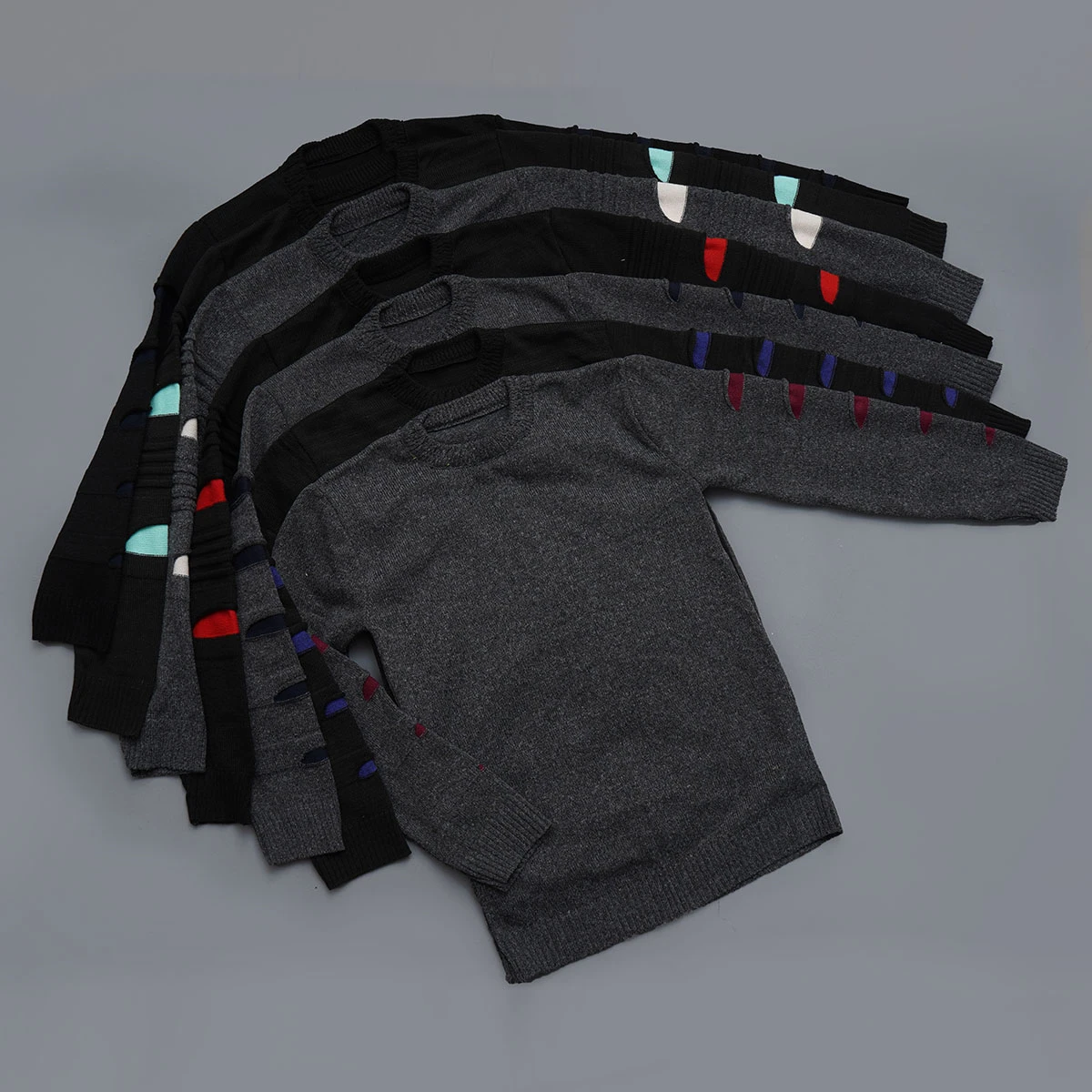 پلیور مردانه یقه گرد ذغالی سرمه ای مدل Q20