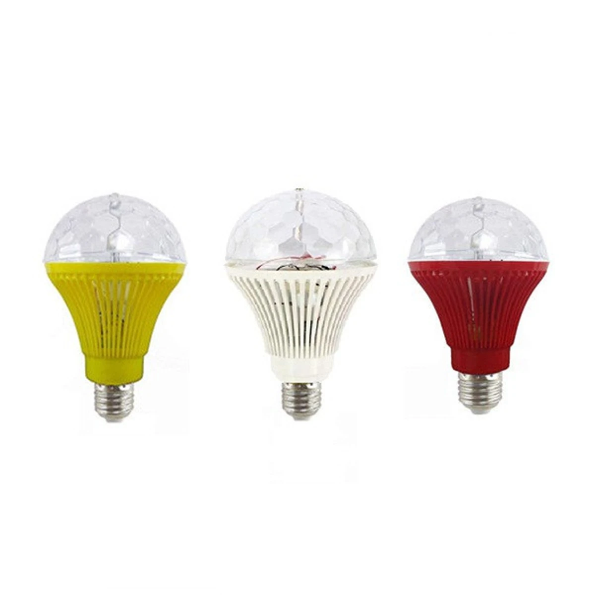 لامپ رقص نور چرخان ای لایت با ظاهری لامپ گونه به وسیله سرپیچ معمولی (E27) به پریز برق متصل می شود که در زمان اتصال به برق قسمت بالای لامپ می چرخد و با تابش نور به صورت RGB جلوه ی خاصی ایجاد می کند. با خرید این محصول لحظاتی خاص و به یادماندنی را در جشن ها و میهمانی ها برای عزیزانتان ایجاد میکنید. لامپ رقص نور ای لایت دارای سه نور گردان قرمز ، سبز و آبی میباشد. این محصول کم مصرف بوده و حدودا 100 متر را پوشش میدهد. ای لایت تلاش کرده با ارائه قیمت هایی اکونومی همراه با کیفیتی قابل قبول خریداران محصولات خویش را راضی نگه دارد.