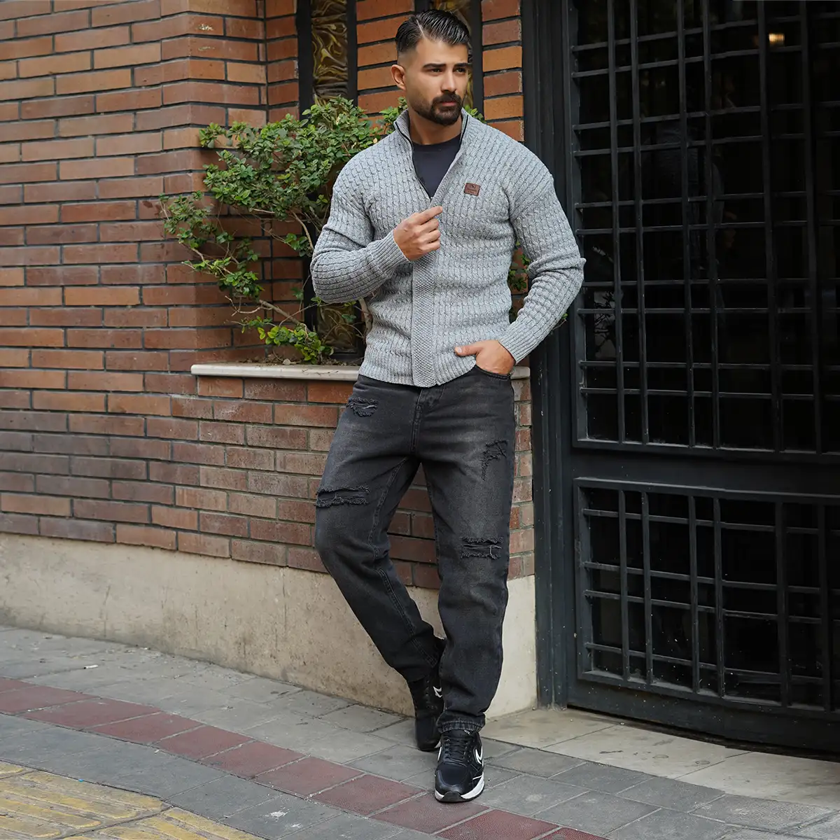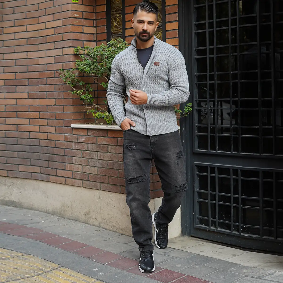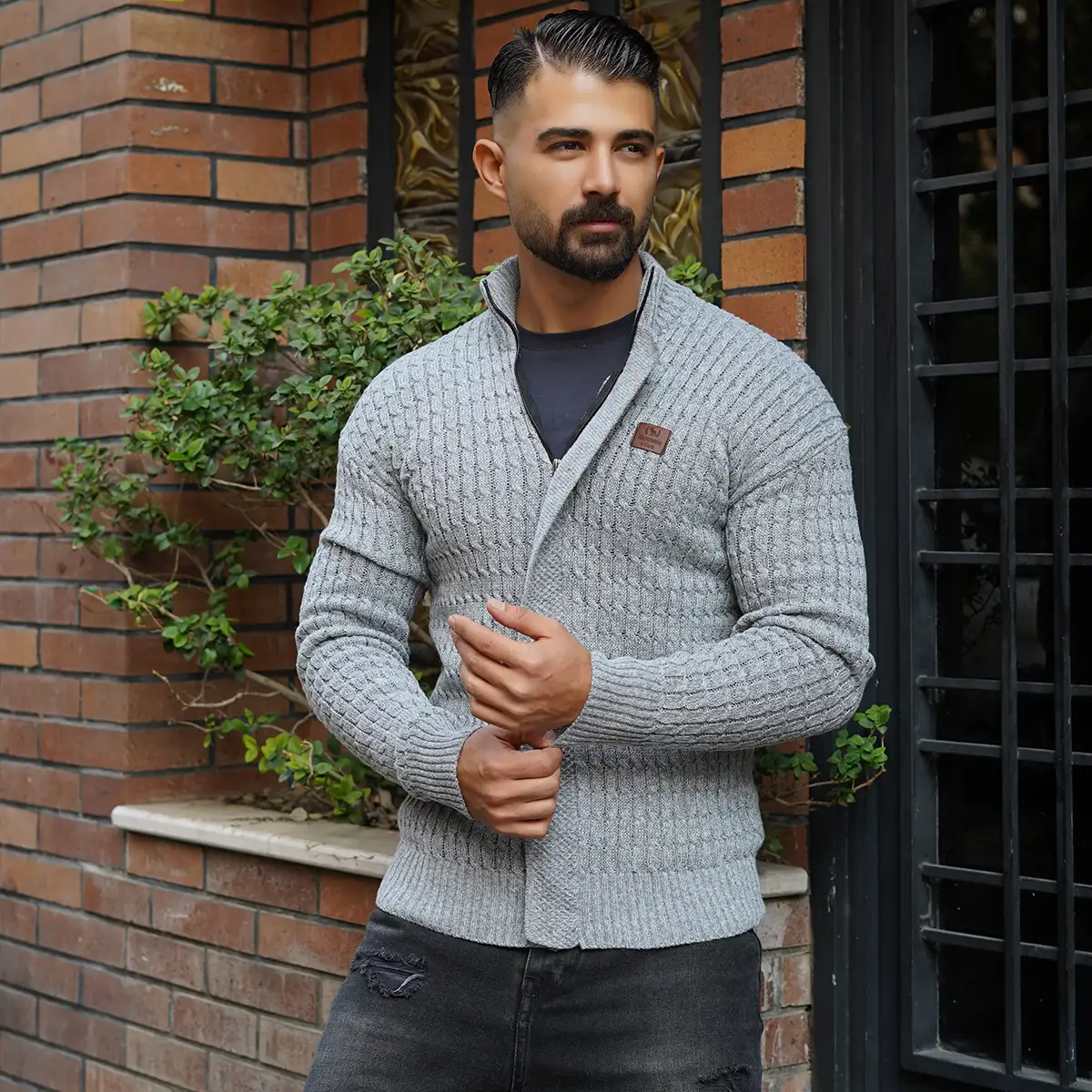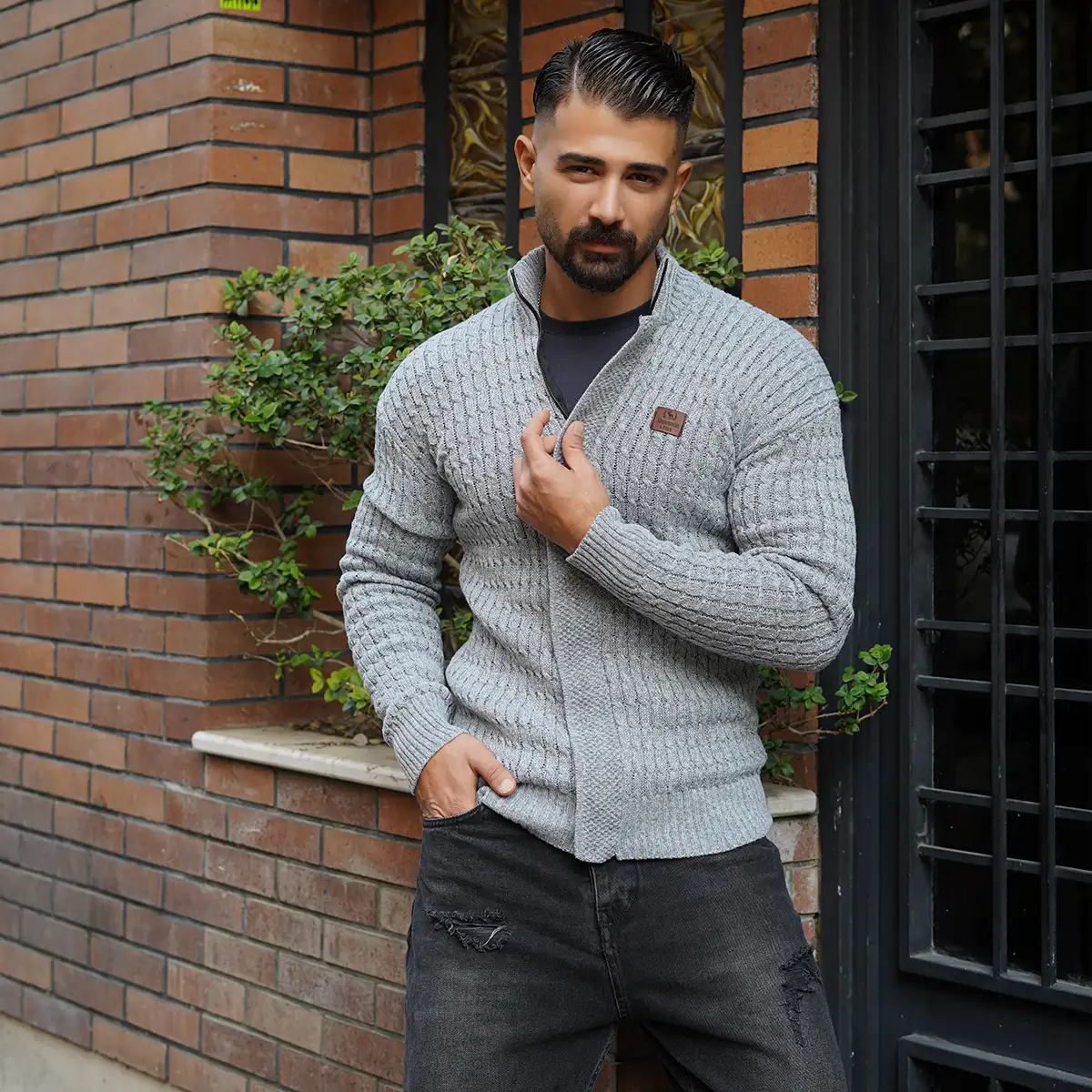 سوئیشرت بافت طوسی مردانه مدل OKSEN