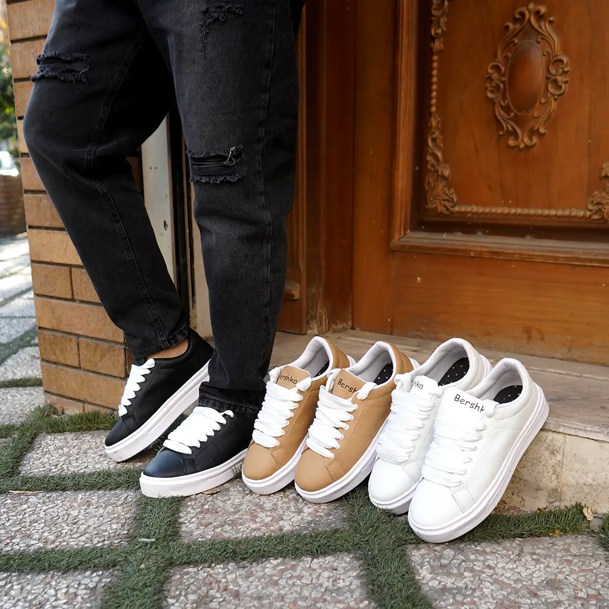 کفش تخت مشکی زیره سفید مردانه مدل MANIN