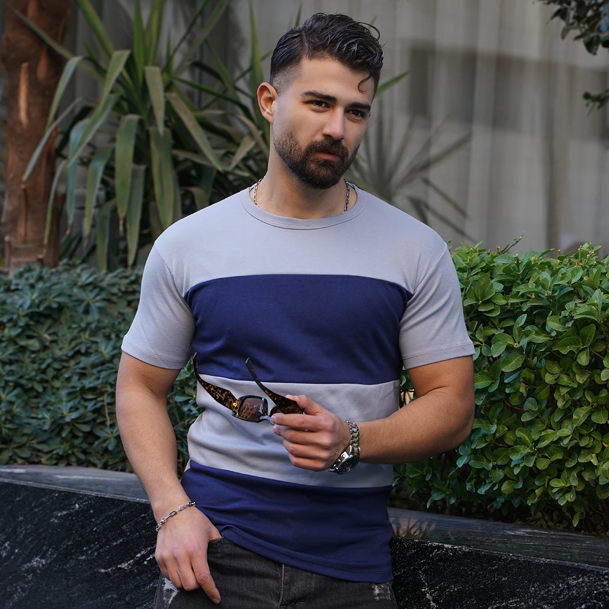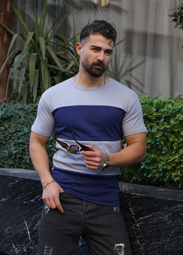 تیشرت مردانه طوسی سرمه ای مدل Dayar