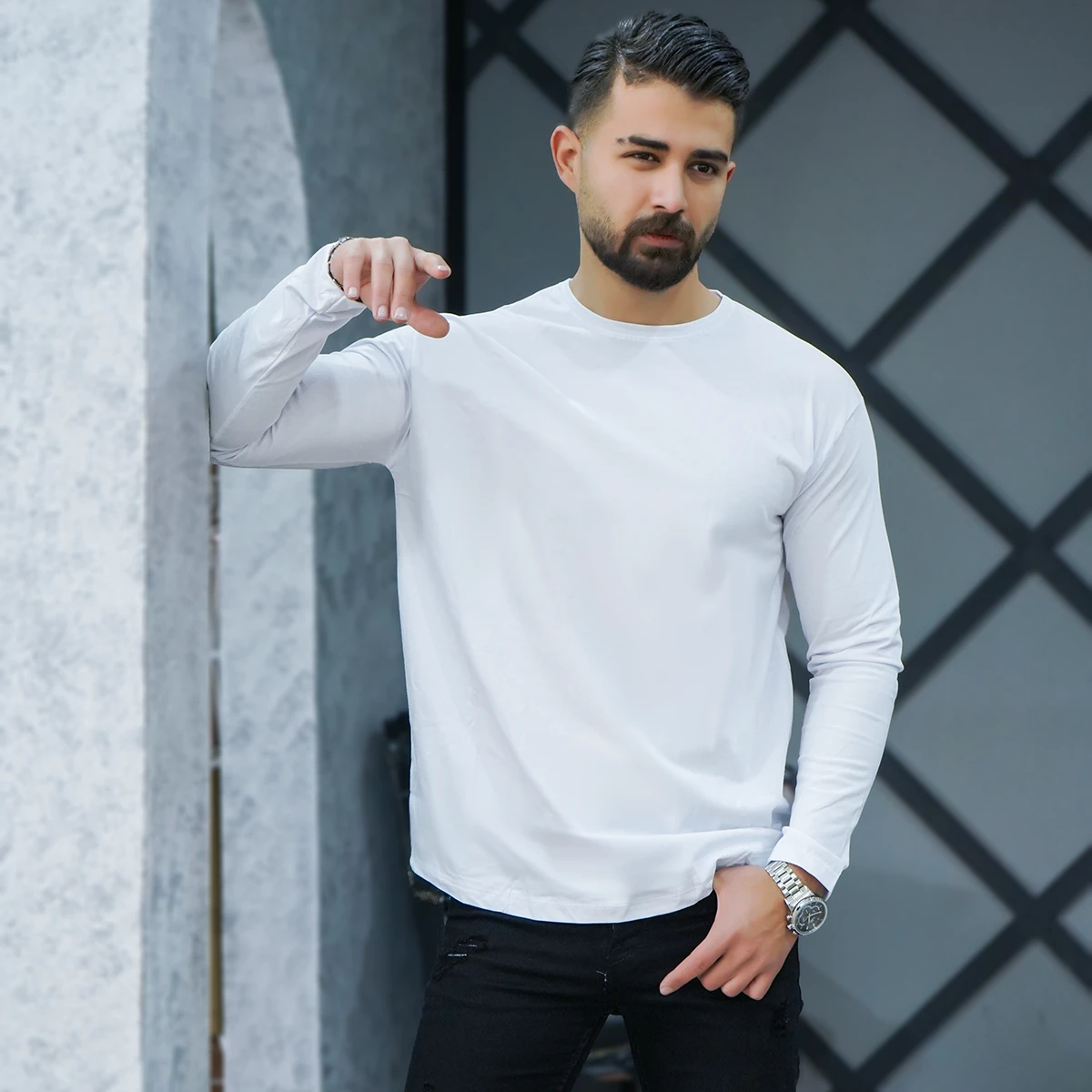 تیشرت آستین بلند سفید مردانه مدل Vala