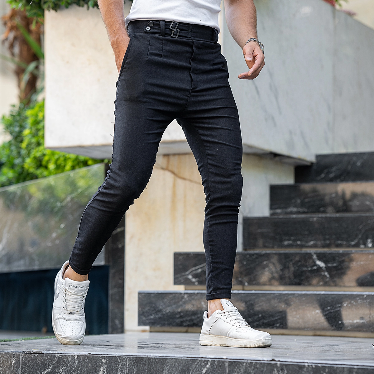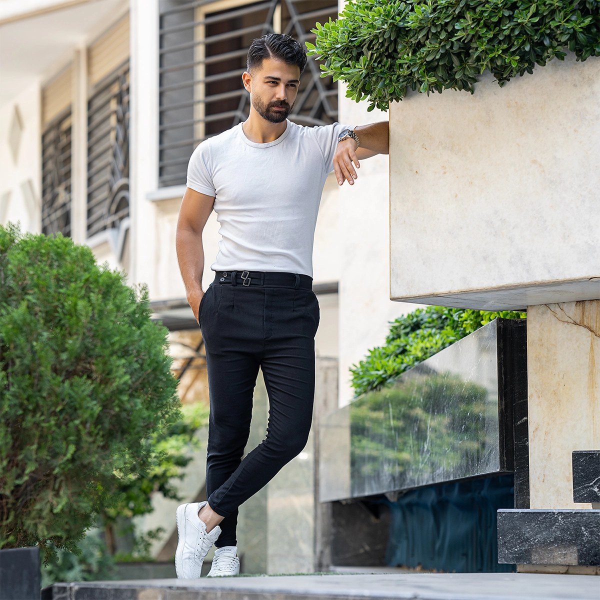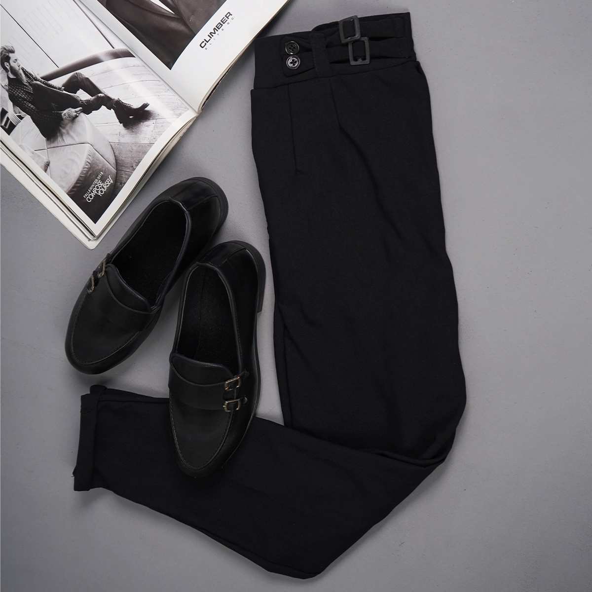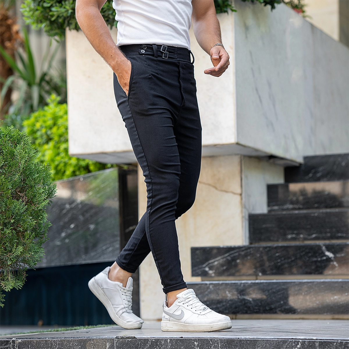 شلوار مردانه مشکی دو دکمه دو سگک مدل kyanosh