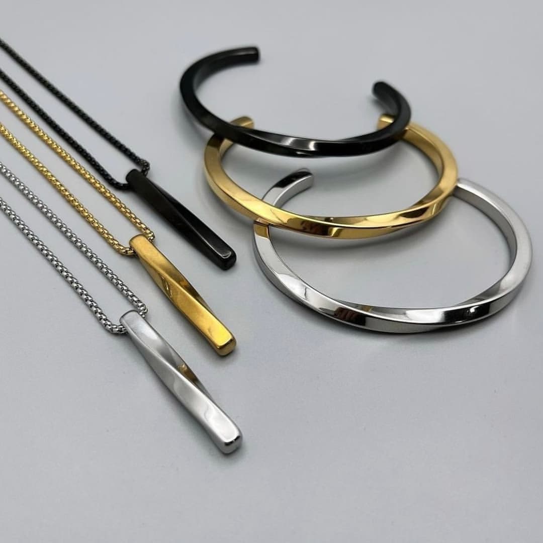 ست گردنبند و بنگل پیچ خورده ( نقره ای )