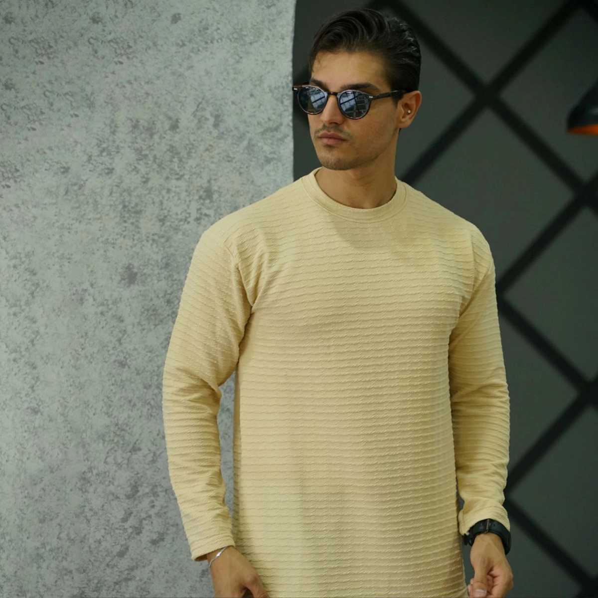 تیشرت مراکشی آستین بلند خطی کرم مدل Borzo