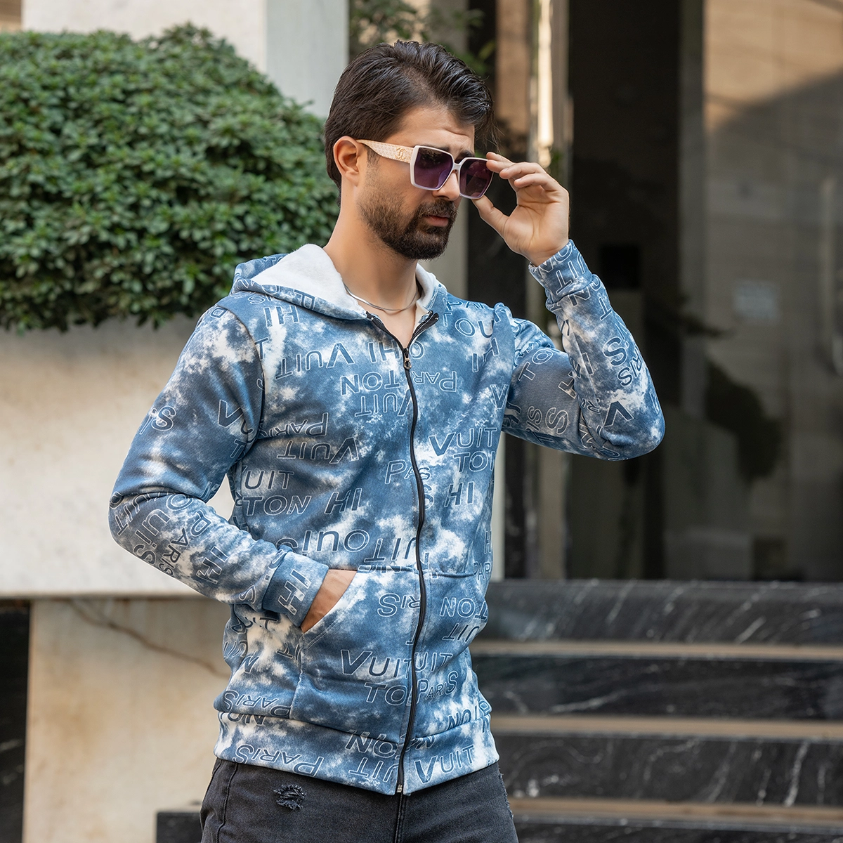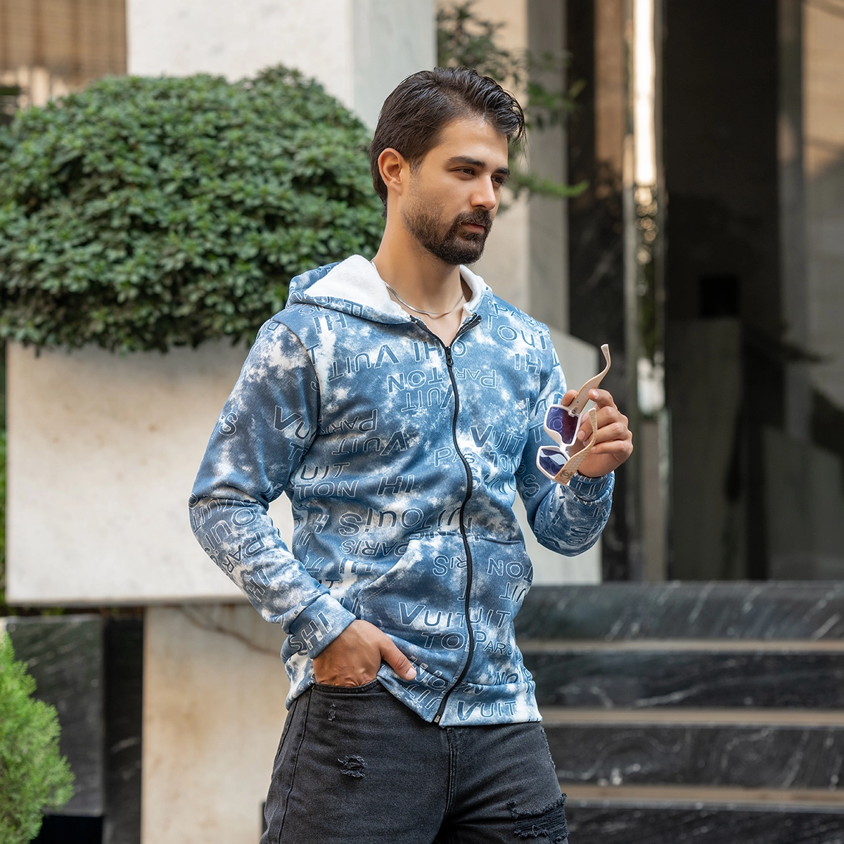 سوییشرت طرحدار مردانه آبی مدل Roham