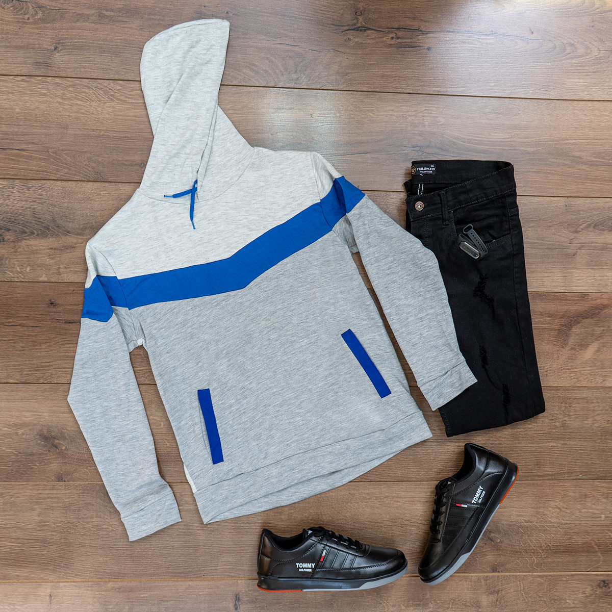 هودی مردانه مدل aykan دو رنگ ملانژ آبي