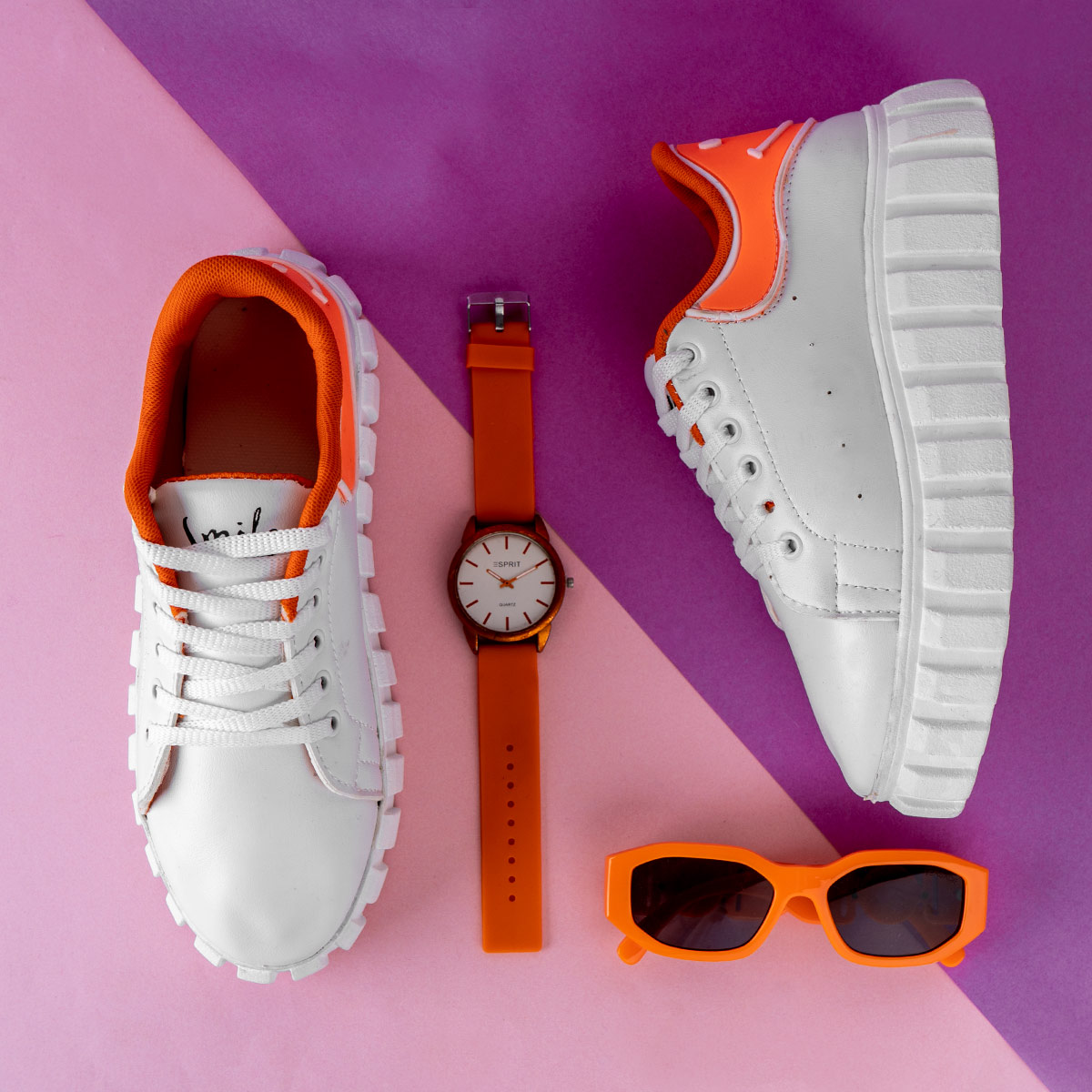 کفش ورزشیsmile زنانه سفیدنارنجی مدل Aspin